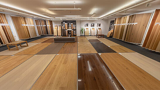 Inspiration pur: viele verschiedene, original verlegte Böden warten auf Sie! Unser geschultes Personal berät Sie gerne vor Ort.