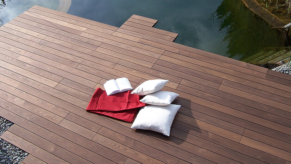 Inspiration pur: viele verschiedene, original verbaute Terrassendielen warten auf Sie! Unser geschultes Personal berät Sie gerne vor Ort.