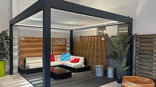 Mit einer Pergola bzw. Terrassenüberdachung machen Sie Ihren Lieblingsort im Freien zur Wohlfühlinsel. Mit dem schützenden Dach für die Terrasse müssen Sie weder einen plötzlichen Schauer fürchten, noch vor sengender Hitze fliehen. Wir bieten Terrassenüberdachungen für jedes Budget – von der günstigen Holz-Pergola bis zur Alu Überdachung inklusive ferngesteuertem Markisendach. Unsere riesige Ausstellung präsentiert Ihnen Highlights aus unserem Sortiment. Und dank Fachberatung und Montage-Service können Sie sich schon bald auf eine Pergola freuen, bei der wirklich alles passt!