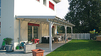 Die Terrassenüberdachung aus Alu ist die absolute Premiumvariante für das Terrassendach. Gegenüber der Terrassenüberdachung aus Stahl ist die Alu-Variante leichter und korrosionsbeständiger. Unsere Alu Überdachungen erlauben grosse Spannweiten zwischen den Pfosten für den Panoramablick. Ob direkt am Haus oder als Terrassenüberdachung freistehend: Alu steht für zuverlässige Qualität.